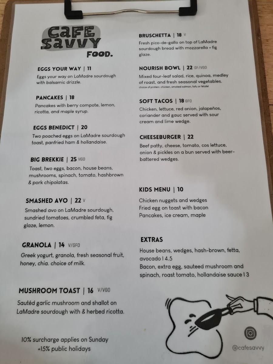 Cafe Savvy Menu